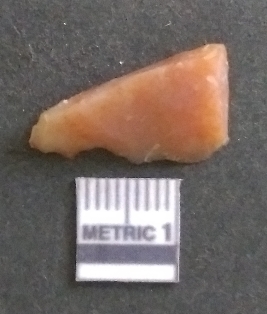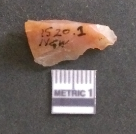 | Description / विवरण | This is a chalcedony stone blade fragment, broken at both ends. Flaked and ridged with sharp margins. Bulb of percussion seen on it. |