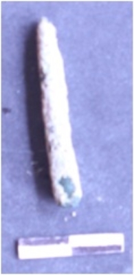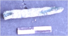 | Description / विवरण | It is a corroded copper nail. Elongated in shape. Broken at both the ends. Patinated with soil practical on the surface. |