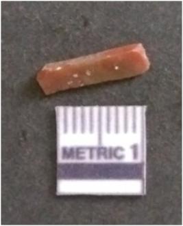 | Description / विवरण | This is a chert stone blade fragment, broken at both ends. Flaked and ridged with sharp margins. Broken at both ends. |