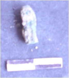 | Description / विवरण | It is a small copper nail fragment, greenish brown in color. Irregular in shape. |