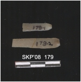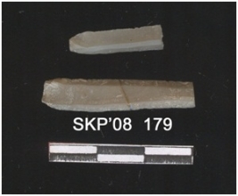 | Description / विवरण | Chert blade fragment, bulb of percussion on the ventral side and two ridges of flake removal on the dorsal side. Used ware, marks on either lateral margin. |