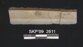 | Description / विवरण | Chert blade. The ridges can be seen clearly. Both the sides are retouched. It is trapezium in cross section. The ventral surface is plain. |