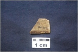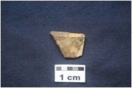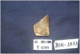 | Description / विवरण | A piece of a scraper of which has a faceted edge. It is polished and charred. |