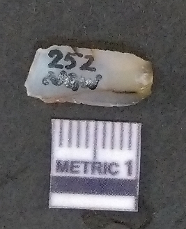 | Description / विवरण | It is a chalcedony flake with bulb of percussion on the ventral side. |