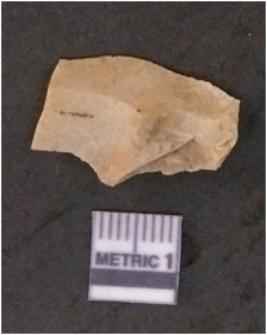 | Description / विवरण | It is a chert flake with striking platform, many flake scars with ripples on it. |