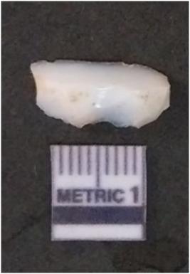 | Description / विवरण | It is a milky quartz flake, flake scars seen on the surface with ripples on it. |