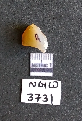| Description / विवरण | It is a chalcedony dlake with bulb of percussion on the ventral side. Cortex on one side. |