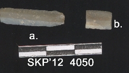 | Description / विवरण | This is a chert blade fragment, thin rectangular shaped with trapezium cross section, sharp margins and a bulb of percussion at one end. Flaked at the opposite side of bulb of percussion. |