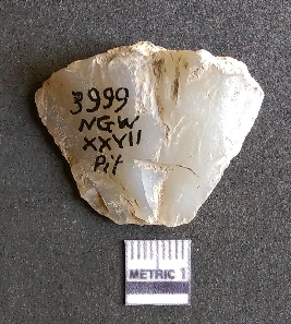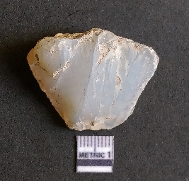 | Description / विवरण | It is a quartz flake, very cryptocrystalline, flake scars on the surface with ripples on it. Cortex seen on the surface. |