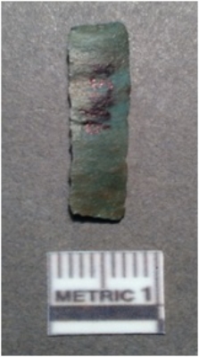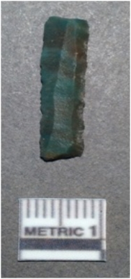 | Description / विवरण | It is a chert blade, both the sides are sharp and retouched. The ridges can be seen clearly on the dorsal surface. Ventral surface is plain and it is trapezoidal in cross section. |