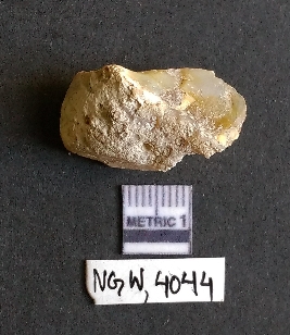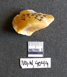 | Description / विवरण | It is a chalcedony flake with a striking platfrom, many flake scars with ripples on it. Cortex covered on one side. |