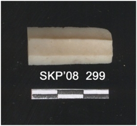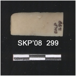 | Description / विवरण | Broken chert blade. It is rectangular in structure. The ridges can be seen clearly. The sides are rectangular. The ventral surface is plain and it is trapezium in cross section. |