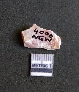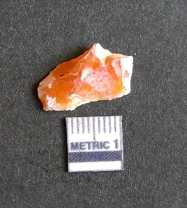 | Description / विवरण | It is a chalcedony flake with a bulb of percussion on the ventral side. |