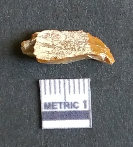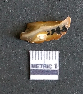 | Description / विवरण | It is a chalcedony flake with bulb of percussion on the ventral side, cortex covered on one side. |