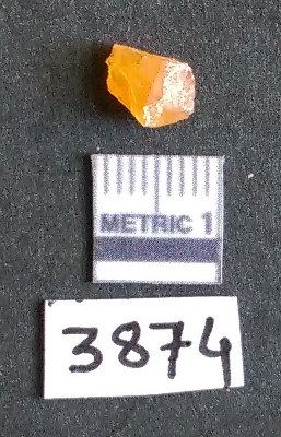 | Description / विवरण | It is a chalcedony flake with a bulb of percussion on the ventral side, cortex covered on one end. |
