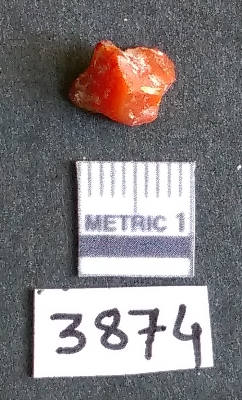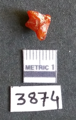 | Description / विवरण | It is a carnelian flake with a striking platform with bulb of percussion on the ventral side. |