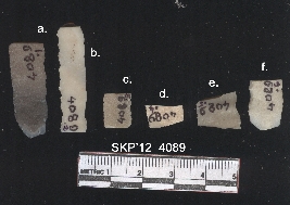 | Description / विवरण | Flaked, chert blade fragment with trapezium cross section. |