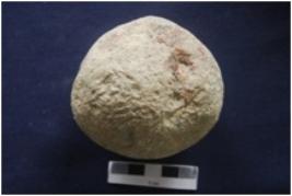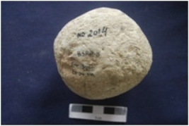 | Description / विवरण | It is a complete quartz hammer stone. Two surfaces is irregular with lot of wear and tear, Calcium encrustation is also present at surface. It is globular in shape. |