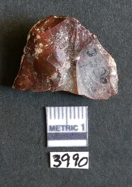 | Description / विवरण | It is a jasper flake with sharp edges and striking platform on the proximal end. |
