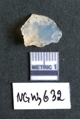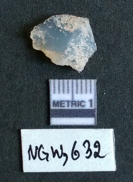 | Description / विवरण | It is a chalcedony flake with a bulb of percussion on the ventral side, cortex on one end. |