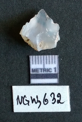 | Description / विवरण | It is a quartz flake with flake scars on the surface with ripples on it. |