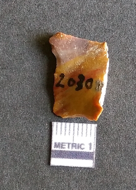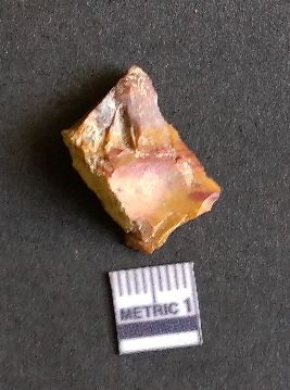 | Description / विवरण | It is a chalcedony flake, with a bulb of percussion on the ventral side. Cortex on one end. |