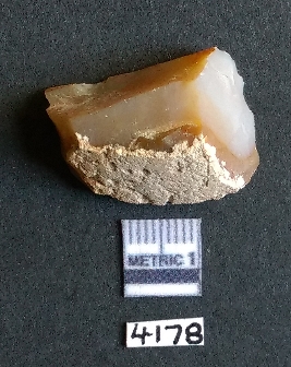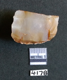 | Description / विवरण | It is a chalcedony flake, with a bulb of percussion on the ventral side. Cortex on one end. |