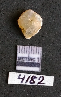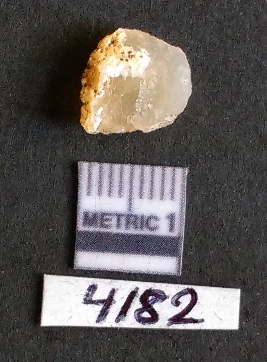 | Description / विवरण | It is a chalcedony flake, with a bulb of percussion on the ventral side. Cortex on one end. |