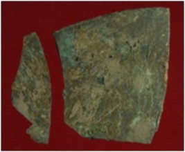 | Description / विवरण | Trench XF 3, Qdt 3, Pit 2 SB layer 1, depth 190 cm These are two broken pieces of copper. Patina is present with dust. |