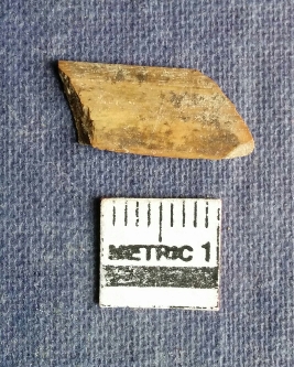 | Description / विवरण | This is a bone scarper, flat and rectangular in shape, fine smooth surface with broken ends. One end shows rectangular sharpen end. |