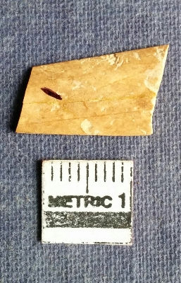 | Description / विवरण | This is a bone scraper, flat with broken end. This is some areas which shows insect bitter marks. |
