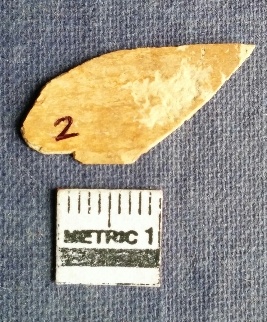 | Description / विवरण | This is a bone scraper, flat with broken end. This is some areas which shows insect bitter marks. |