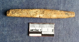 | Description / विवरण | This is a bone point with both ends broken. One and is more pointed. Fragile due to weathering and has a flaked marks on the broken end. |