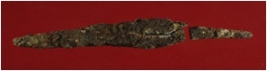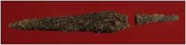 | Description / विवरण | Trench XF 3, Qdt 2, layer 1, depth 10 cm It is an arrow head made of iron. Broken in two pieces. Badly corroded. |