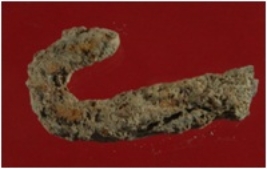 | Description / विवरण | Trench XF 3, Qdt 2, layer 1, depth 10 cm It is an iron hook. One side is bent inward. Badly deformed and corroded. |