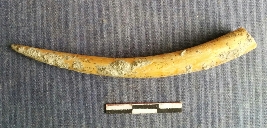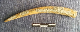 | Description / विवरण | This is a bone point. A beautifully curved bone point with a bead towards the pointed end. |