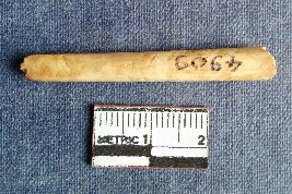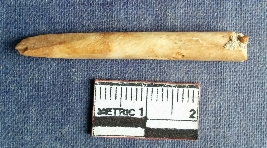 | Description / विवरण | This is a bone point with a flattened tapered point, Retouched and polished with useware marks. |