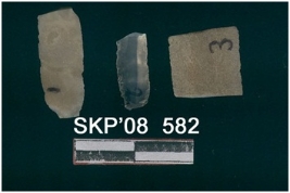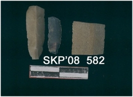 | Description / विवरण | Chert blade, bulb of percussion on one end of the ventral side other end is flat, triangular cross section and flaked edges. |