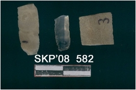| Description / विवरण | Chert blade with trapezium cross section. Ventral surface is flaked and smooth, with fine lateral margin. |