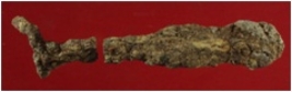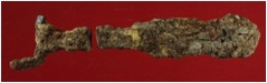 | Description / विवरण | Trench XF 3, Qdt 4, Dump 1 SB layer 1, depth 90 cm It is a spear head, broken in two pieces. Badly deformed and corroded. |