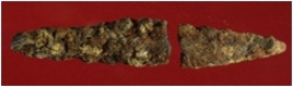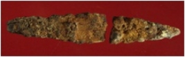 | Description / विवरण | Trench XF 2, Qdt 1, layer 2, depth 80 cm It is an iron arrow head, broken in two pieces. One end has a sharp tip. Badly rusted. |