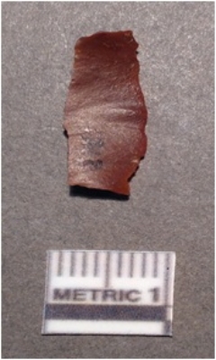 | Description / विवरण | It is a chert blade, bothe sides are sharped and retouched. The ridges can be seen clearly, dorsal surface and it is triangle in section. |