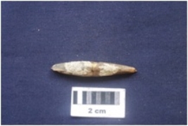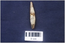 | Description / विवरण | Curved piece with pointed ends circular in section in the central and thinner toward the ends. |