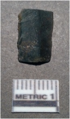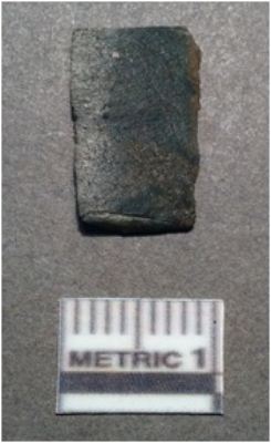 | Description / विवरण | It is a chert blade, both the sides are sharp and retouched. The ridges can be seen clearly on the dorsal surface, the vendral surface is plain, it is traingular in shape and dark green in color. |