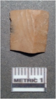 | Description / विवरण | It is a chert blade, both the sides are sharp and retouched. The ridges can be seen clearly on the dorsal surface, the vendral surface is plain, it is traingular in cross section. |