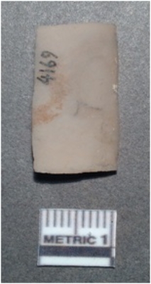 | Description / विवरण | It is a chert blade, both sides are sharp and the ridges can be seen clearly on the dorsal surface, vendral surface is plain and trapezium in section. |