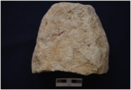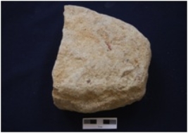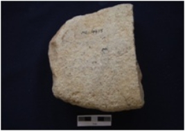 | Description / विवरण | Broken graining stone cut an elliptical section, flat on one surface. It is irregular. |
