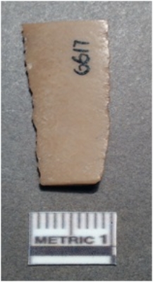 | Description / विवरण | It is a chert blade, both the sides are sharp and retouched. The ridges can be seen clearly on the dorsal surface. |