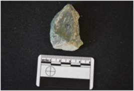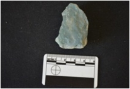 | Description / विवरण | Chert scarper has flake scars on both sides, striking platform, absent bulb and retouched on working edge. |