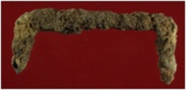 | Description / विवरण | Trench YM 6, Qdt I, Stratum layer 1, Depth -35 cms. It s a clamp made of iron. Rusted and damaged and little cracked at some places. Appearance is dusty brown. |